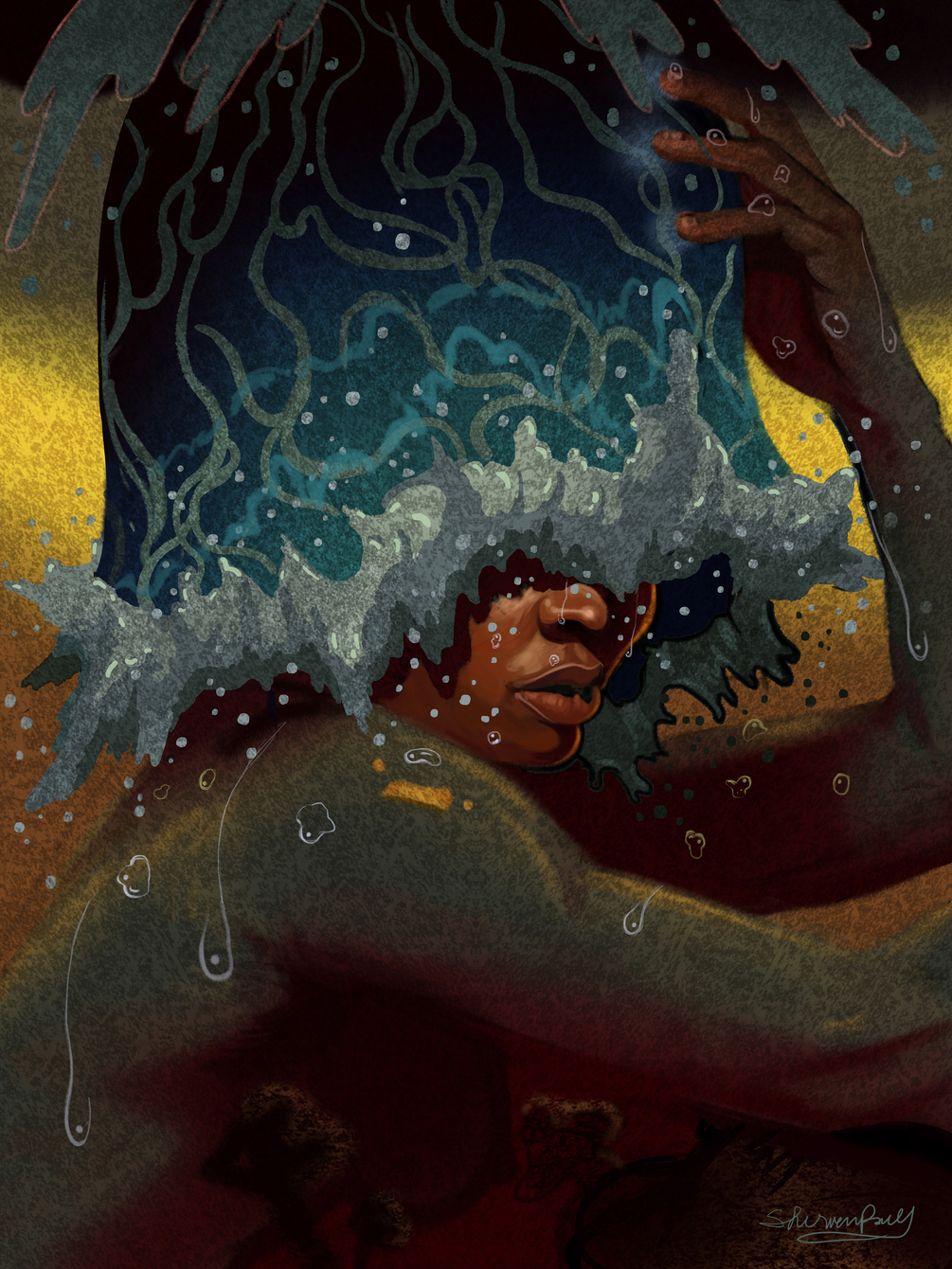 Picture feeling submerged, each breath a struggle, every movement heavy. Yet, beneath the weight, the waves carry healing energy, sacrad energy washing over us, it brings us to life!